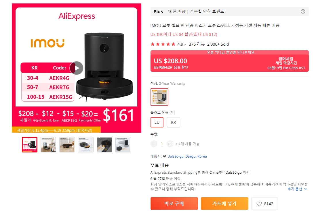 코드와 카드추가할인을 통해서 최대한 할인 받는 방법에 대해 알아보겠습니다. 핫한 제품인 IMOU 로봇 청소기를 기준으로 알아보겠습니다.